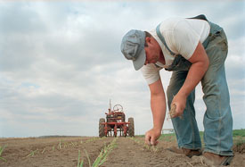 Example of keyword set for image of man planting onions:
