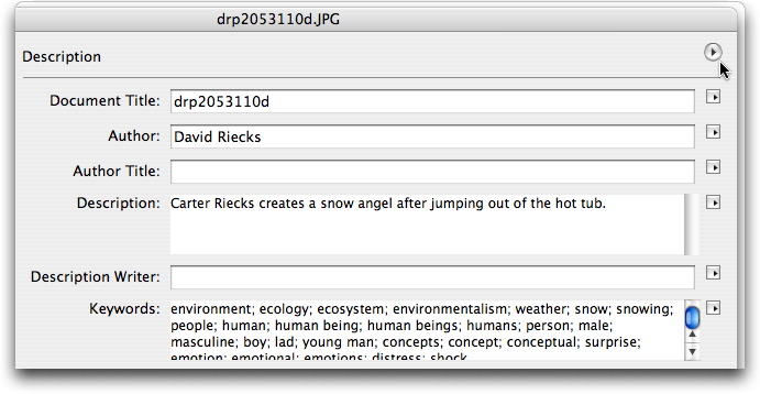 A great way to simplify adding of descriptive information is by creating a metadata template. Note you can always choose wherher to Append or Replace the metadata in your image files.