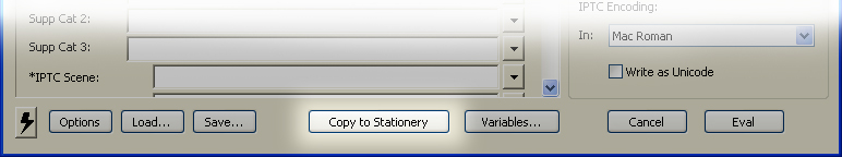 To smooth your workflow, set up as much of this as you can in advance. Then be sure to back up these sets of data on a regular basis, especially after entering a lot of new values. If you typically apply several of these different fields at one time to a folder of images, you’ll be glad to learn you can also save the entire IPTC Stationery Pad as a template for later use. There are two options: Use the Load button to retrieve values saved as templates (covered below), or use the Snapshot button (the button with the lightning bolt icon in the lower left corner of the IPTC Stationery Pad dialogue) to save the current set of data for later use.